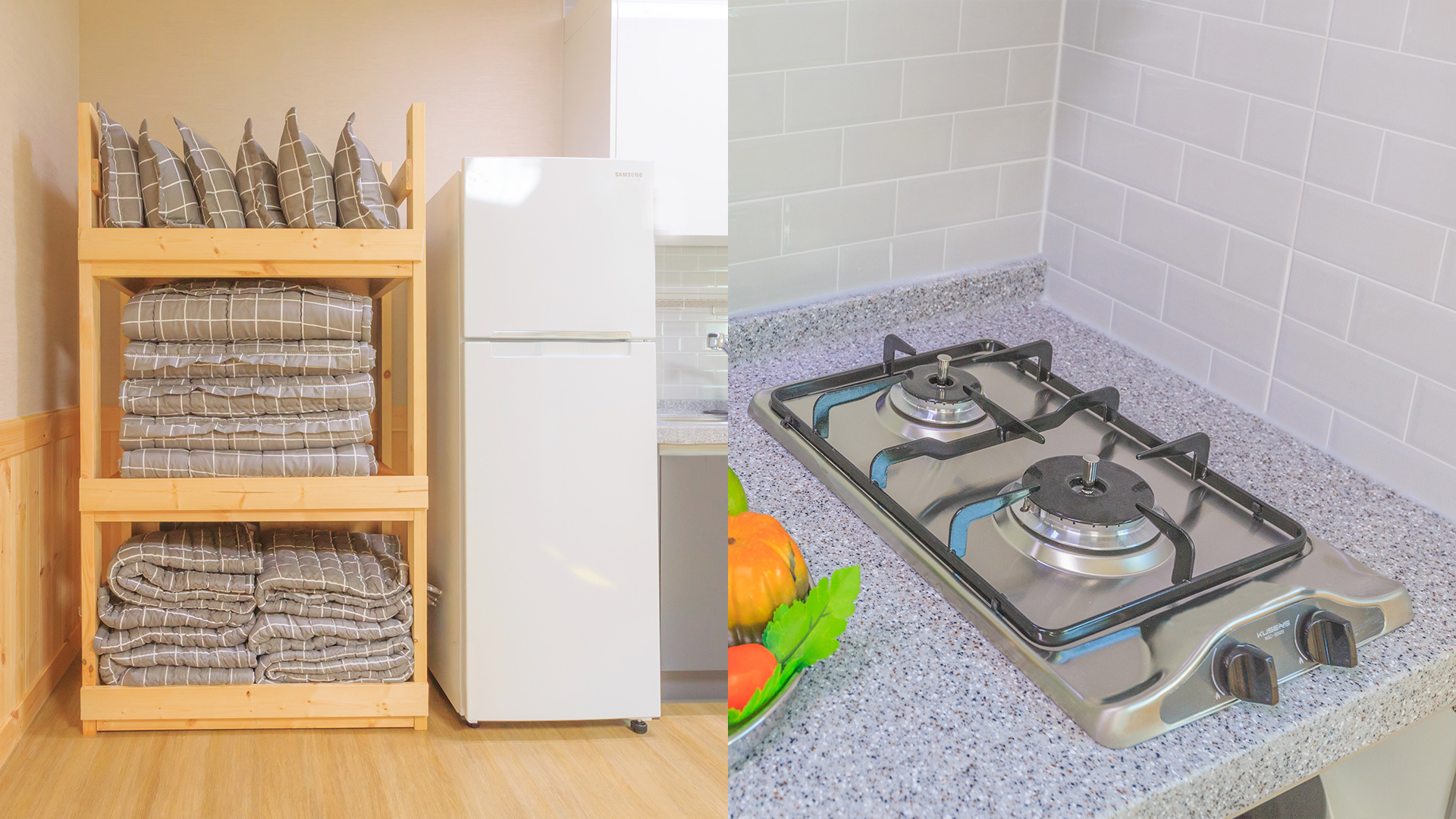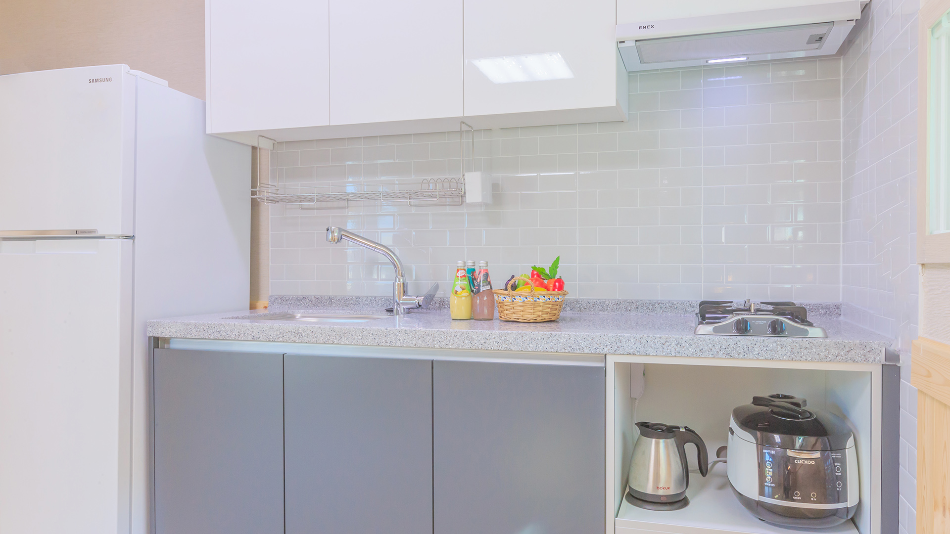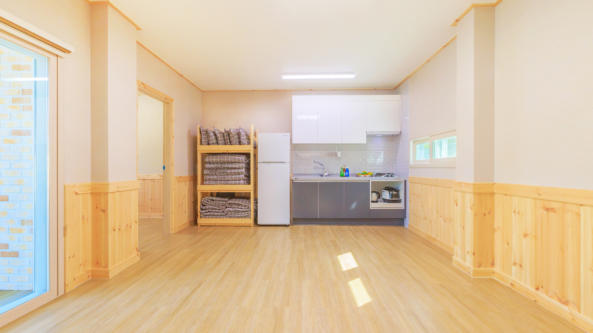 • · 구비시설 ·가스레인지 / 스텐드 에어컨(복층 벽걸이 에어컨) / 전기밥솥 / 선풍기 / TV / 냉장고 / 커피포트 / 세면도구 / 헤어드라이기 / 식기류일체