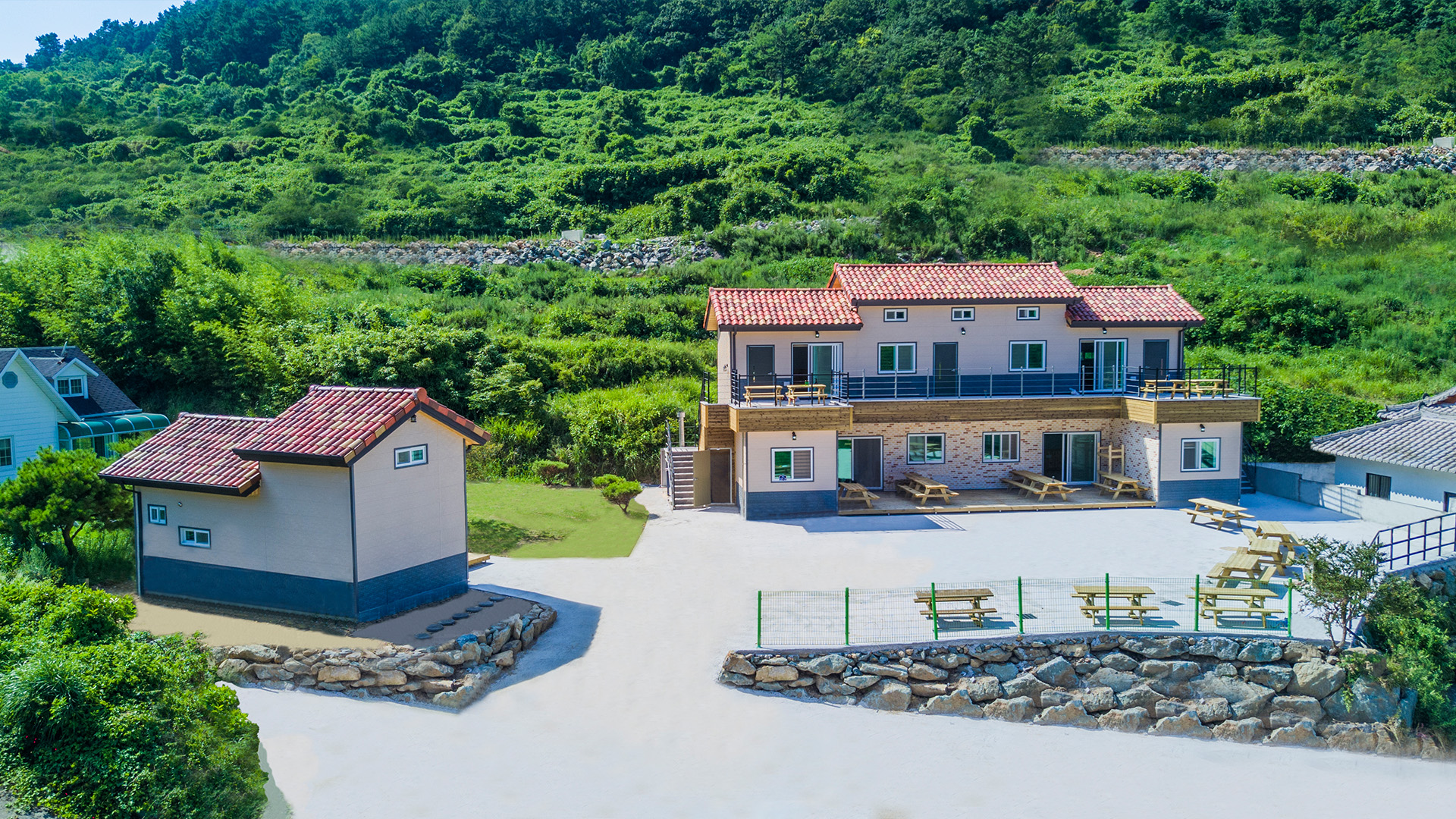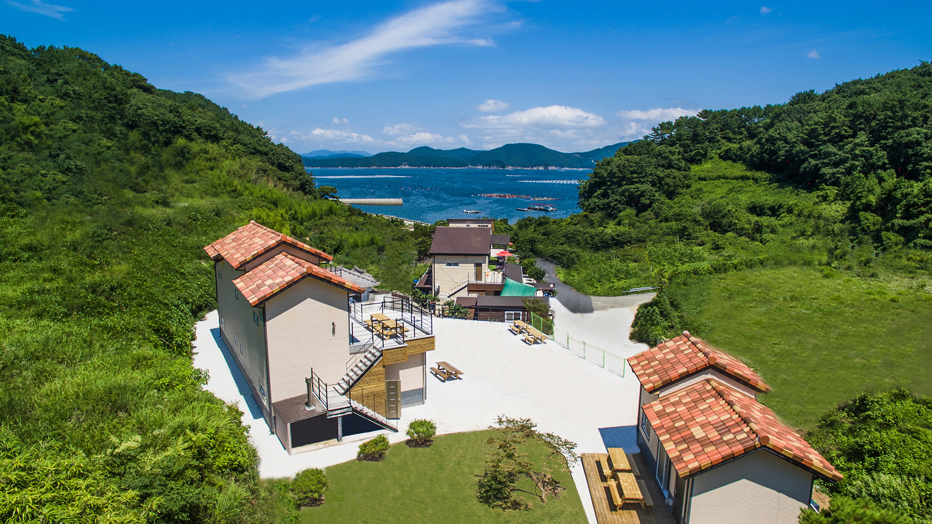 앞으로는 푸른 바다 그리고 뒤로는 자연이 둘러쌓여 있어